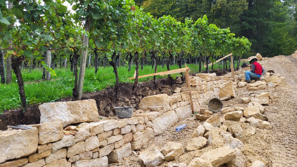 Die «Stiftung Umwelteinsatz» ersetzt im Auftrag der Weinbaugenossenschaft und BirdLife Schweiz bis Mitte Oktober 2022 eine alte Betonmauer durch eine Trockensteinmauer.
